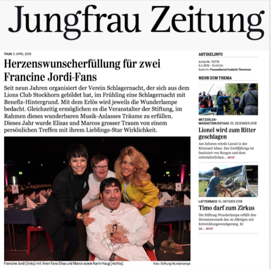 Jungfrau Zeitung | Herzenswunscherfüllung für zwei Francine Jordi-Fans